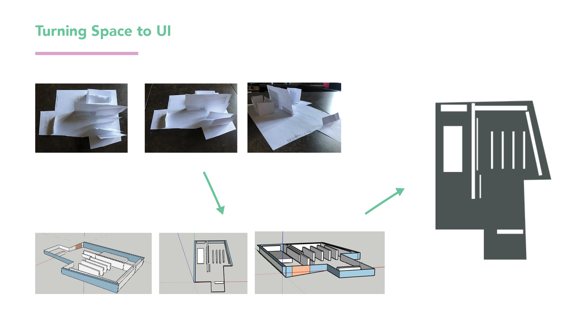 The displayed layout is only an example of how physical spaces can turn into the UI component. The Shahpper experience has no set singular space. In fact, it is responsive so that different stores can utilize it regardless of their space constraints.